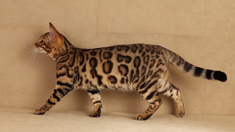 Эти домашние питомцы больше напоминают миниатюрных леопардов, чем обычных кошек. Они имеют подтянутое и эластичное тело, которое помогает им охотиться. Порой эти кошки оказываются сильнее домашних собак и могут с легкостью навредить ни в чем не виновным животным. В видеоролике ниже вы можете понаблюдать за тем, как пес, находясь в полном смятении, несется стремглав от кошки. Чтобы бенгальская кошка не выросла агрессивным диким зверем, в раннем детстве ей нужно уделять много внимания и проявлять заботу. Если она растет в любви, то ее характер становится менее буйным.