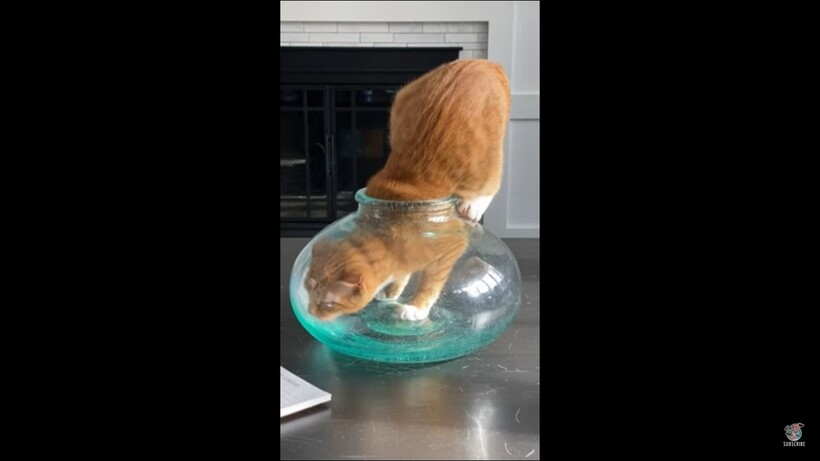 Случай с вазой произошел совсем недавно в городе Монро, который находится в штате Коннектикут, США. В ролике рыжая кошка с легкостью залезает в круглую вазу. Хозяйка вирусного видео рассказала, что главная героиня — ее рыжая кошка, у которой очень короткое прозвище — Бу. Животное любит залезать в эту миску, чтобы поспать, помурлыкать и поиграть. Это видео забавно, потому что сначала оно вызывает у людей беспокойство из-за того, что она втискивается в такое маленькое пространство. Но затем кошка без проблем входит в эту чашу и вылезает из нее. И все радостно выдыхают. А вы знаете, как кошки признаются в любви? Здесь мы писали об этом.