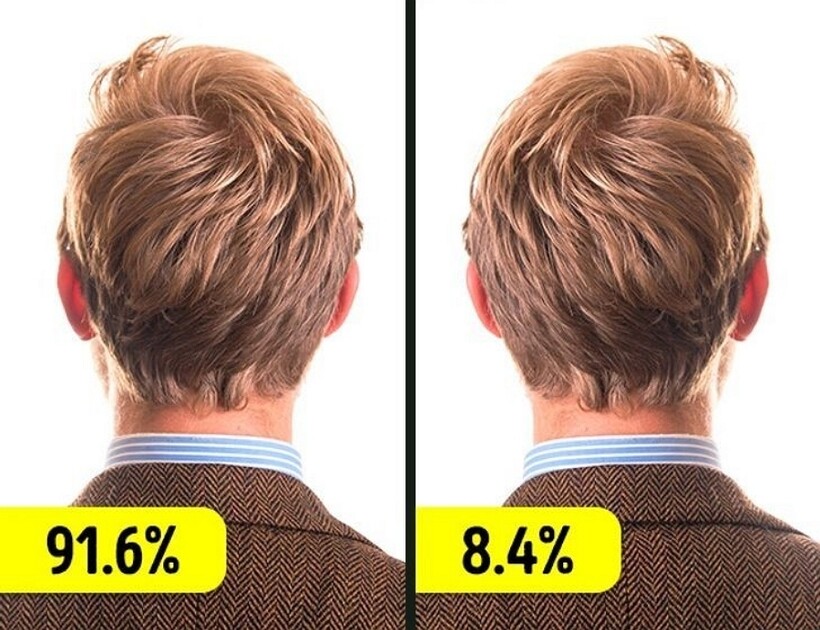 Наверняка многие люди никогда не обращали внимание на то, в какую сторону завиваются волосы у них на макушке. Ученые утверждают, что у большинства они растут по часовой стрелке, и лишь у 8,5 % — против нее. Шансы иметь редкое направление роста волос возрастают у людей, которые являются левшами.