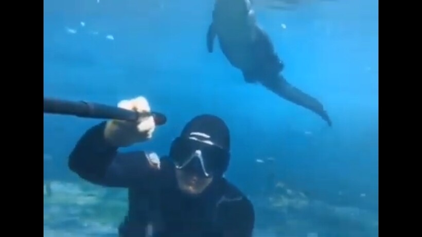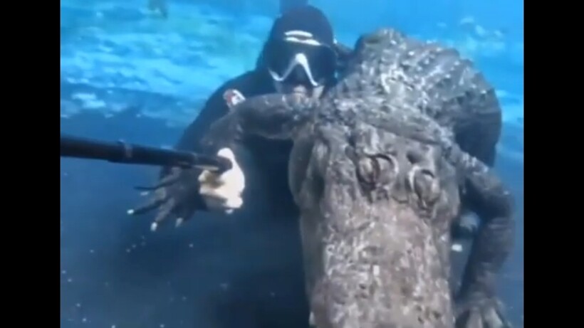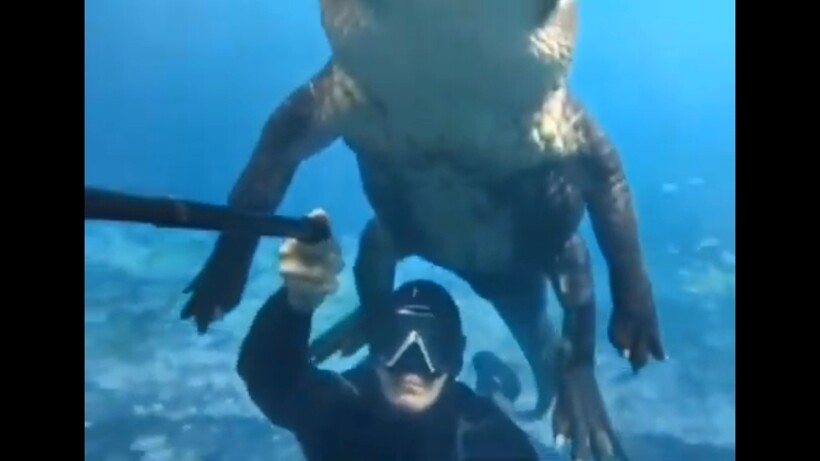 В клипе Крис плавает под водой во время съемки с помощью селфи-палки. Когда мужчина достигает дна, можно увидеть, как аллигатор спускается с поверхности, следуя за ним. Затем рептилия опускается прямо на голову дайвера. Встав на задние лапы, аллигатор перемещает свое тело рядом с головой ныряльщика. Пара пугающе сталкивается нос к носу, находясь под водой. Впечатляет то, что Крис задерживает дыхание почти на две минуты для незабываемой встречи. После того, как они всего мгновение посмотрели друг другу прямо в глаза, мужчина снова выплыл на поверхность.