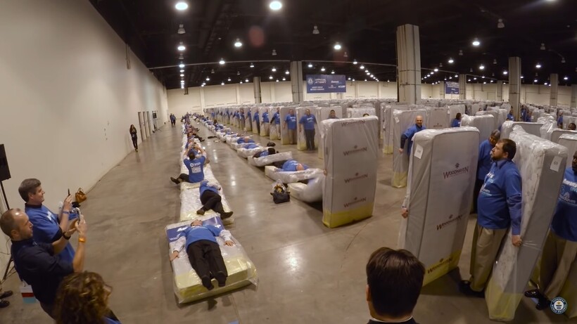 Это была непростая задача. «Подобные записи массового события всегда довольно сложно сделать», — сказала Кристен Отт, менеджер по связям с общественностью Книги рекордов Гиннесса в Северной Америке. Существуют особые правила, касающиеся размера матраса, расстояния друг от друга и общей установки. На каждые 50 человек должен приходиться стюард, который следит за соблюдением правил.