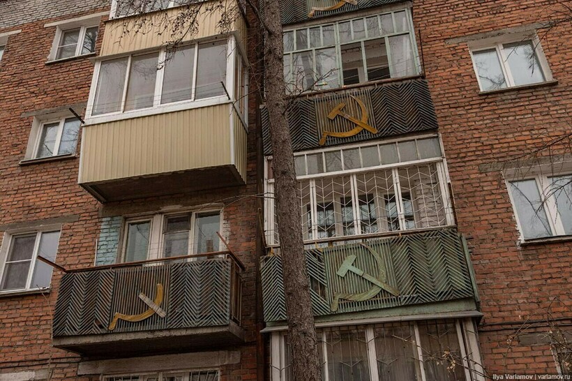 Многие здания были построены в советскую эпоху, потому они типичные, даже можно сказать одинаковые в своей планировке и экстерьере. Но в столицу Бурятии архитекторы решили привнести изюминку, украсив дома не только традиционными орнаментами, но и советскими серпом и молотом.
