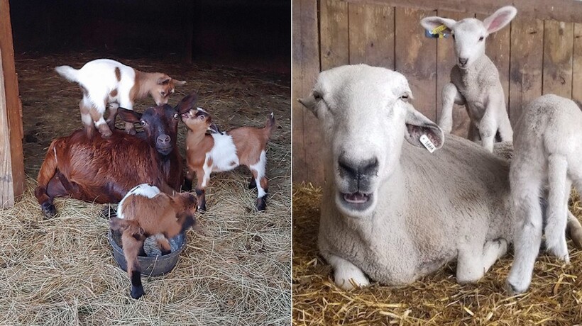 Гораздо веселее прыгать на маме, как на батуте. Бедные козочки.