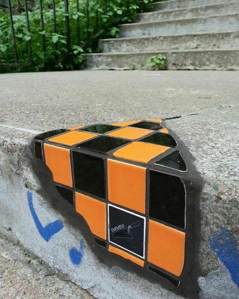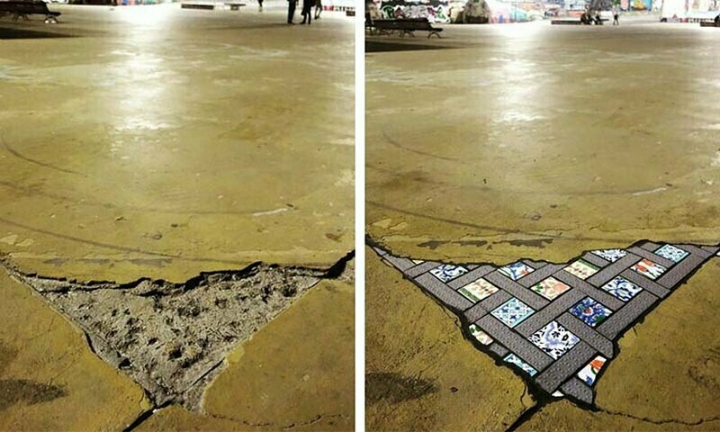 Современные художники всегда в поисках своей ниши для творчества, и некоторые выбирают весьма неординарный способ проявить себя — взаимодействие с городскими реалиями. Недавно мы рассказывали о художнике, который превращает бетонные столбы, старые раковины и прочие унылые вещи в настоящие произведения искусства. А сейчас хотим познакомить вас с еще одним непревзойденным мастером по взаимодействию с городским пространством, работы которого точно на пользу всем. Известен он как Ememem. Художник заделывает дыры на тротуарах, но отнюдь не асфальтом, бетоном или обычным гравием: он превращает их в настоящие островки, напоминающие мозаичные фрески!
