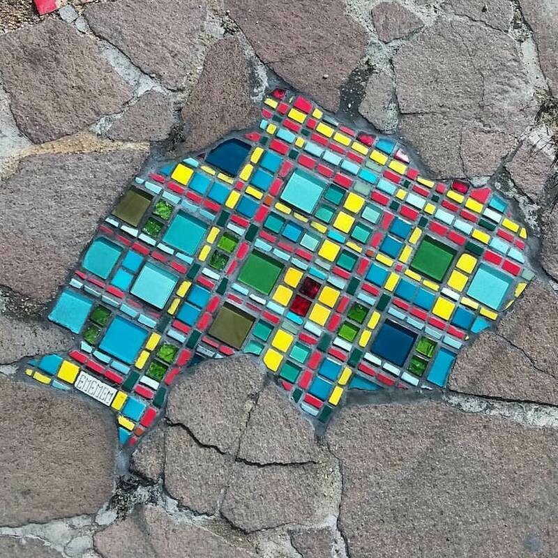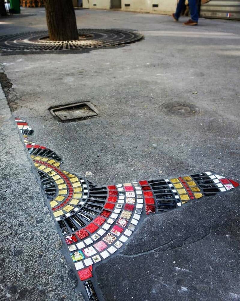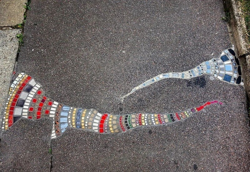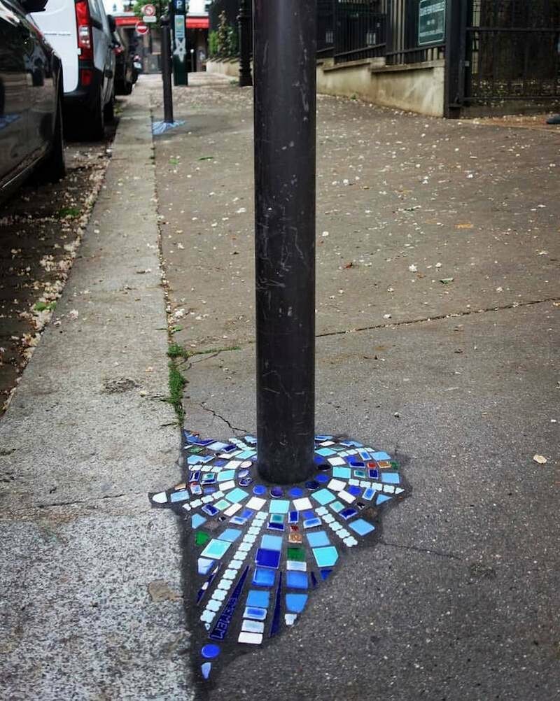 Надоевшие трещины и выбоины могут выглядеть как настоящие шедевры. И все благодаря художнику из Лиона, который заполняет их узорами мозаики.