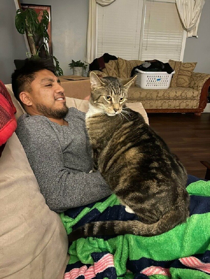 Похоже, он только что узнал, что теперь его пожизненно ждут угощения, объятия и море любви