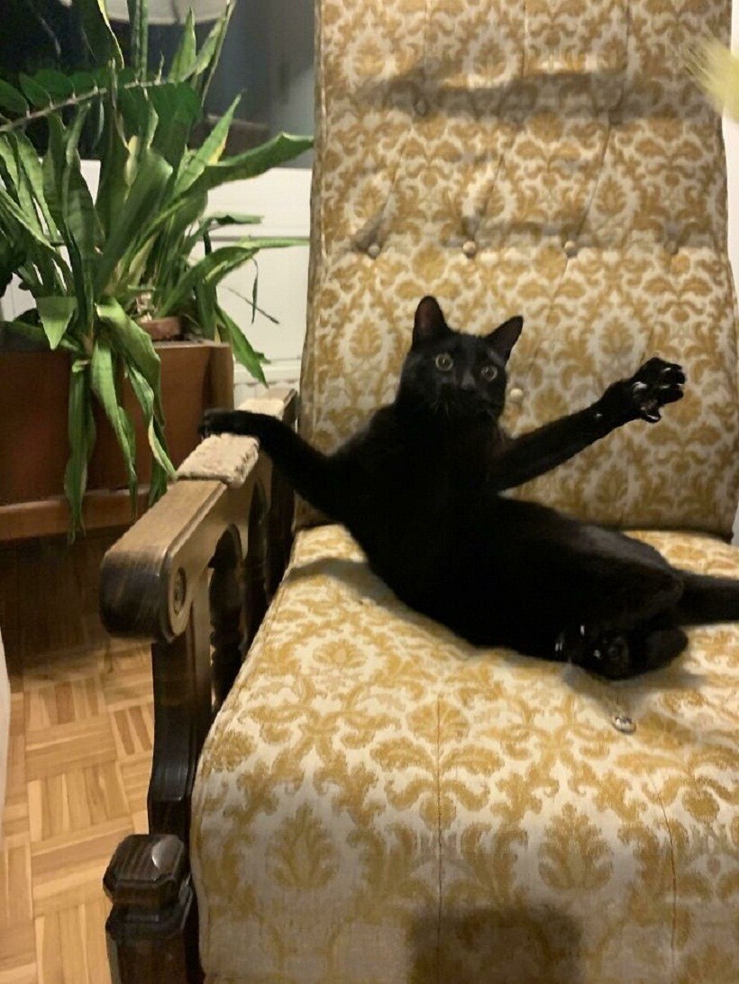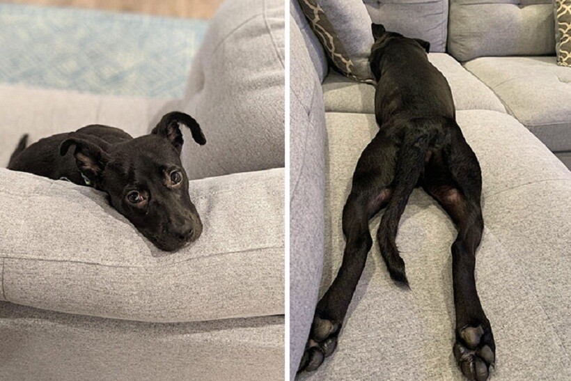 Она так рада возможности лежать на диване, что максимально вытягивается на нем