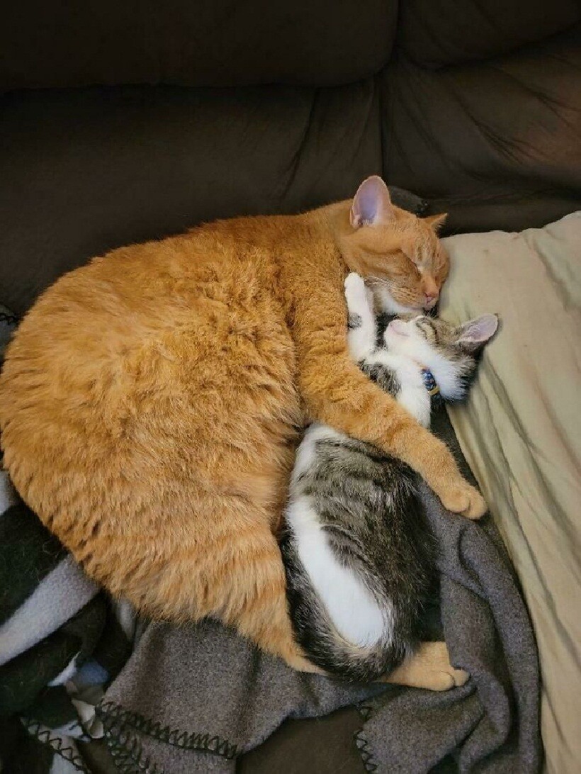 Рыжий здоровяк с теплом встретил нового члена семьи