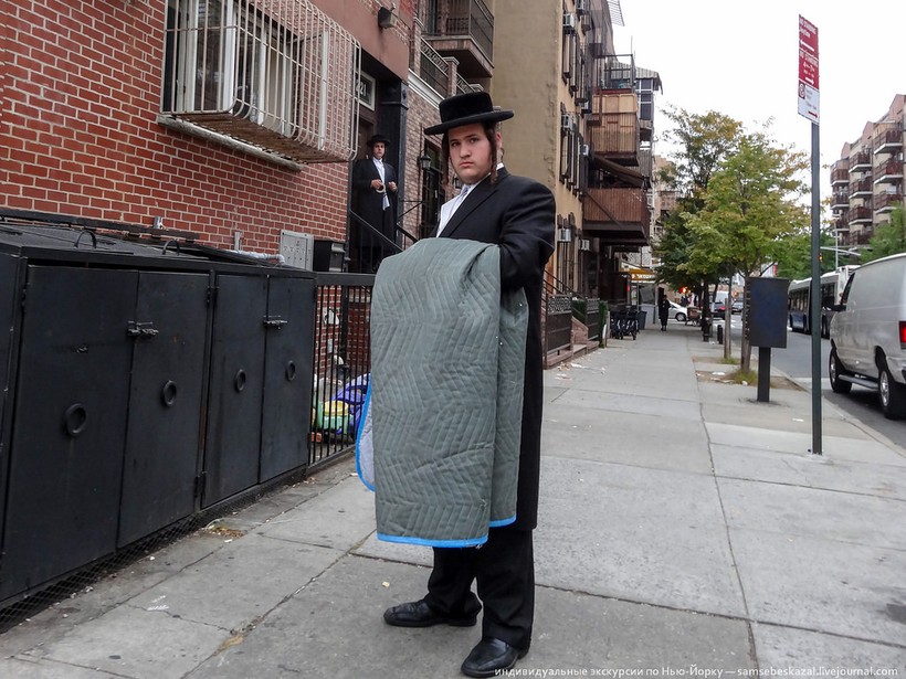 Если вы решите прогуляться с фотиком по городу, то у вас, скорее всего, тоже возникнут проблемы. Думаю, что вы очень быстро познакомитесь с местной полицией, называемой «Общественная безопасность». Они как бы не полиция, но на самом деле очень даже. Скорее всего, первый же встречный хасид сообщит о человеке с фотоаппаратом по рации, и скоро на улице появится машинка с мигалкой и зеленой полоской. Дальше вам зададут вопросы и попросят на выход. Ко фразам, типа «Тут Америка или где?» они будут глухи. Скажут, что снимать можно только с разрешения раввина. А нет разрешения — давай, до свидания! Гугломобиль, снимающий стритвью, смог пройти только пару кварталов. Потом его засекли, тормознули и изгнали из города. Я тоже много не фотографировал. Прокатился пару кругов, поснимал видео и пощелкал из машины. Да и снимать там, честно говоря, нечего — город на редкость уныл и однообразен. А хасидов можно и в Уильямсбурге пофоткать. Там они привыкшие и на людей не бросаются. Тем более, что они все совершенно одинаковые, как будто их на одном заводе по клонированию производят.