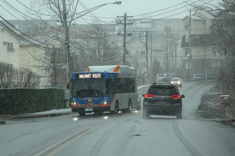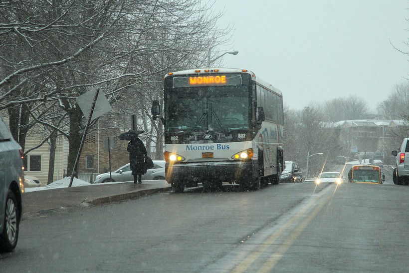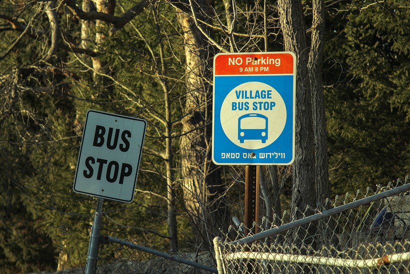 А это автобус, который ходит в еврейские районы Нью-Йорка. Маршрут имеет лицензию штата и субсидируется государством. Внутри сегрегация. Женщины едут отдельно от мужчин.