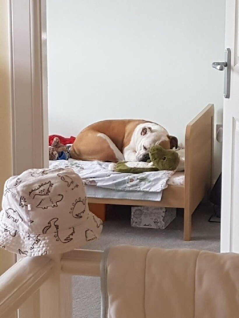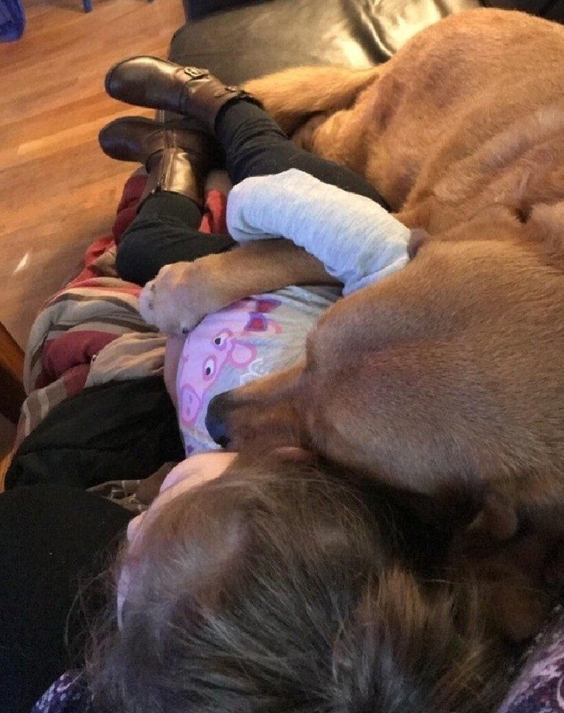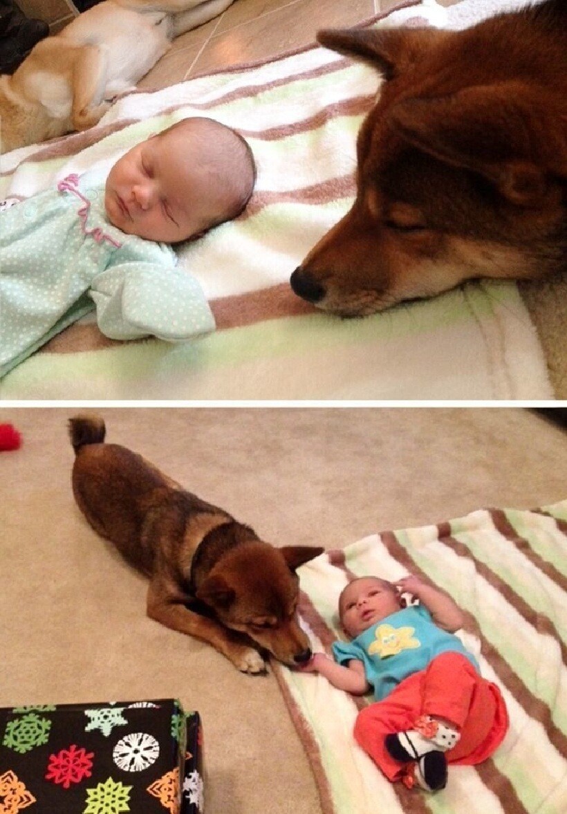 С тех пор, как малыша принесли из роддома, пёс не отходит от него