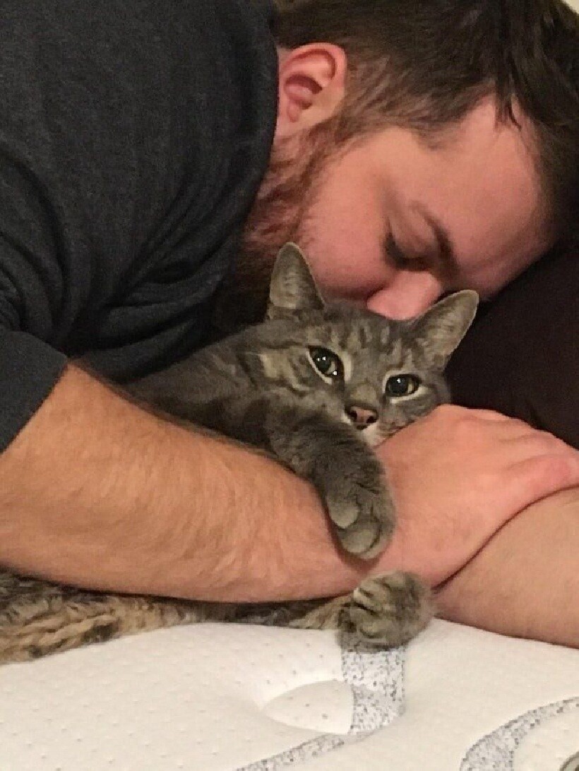 Кот присматривает за «братом», пока тот отходит от наркоза