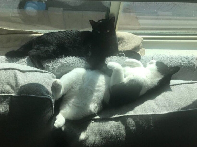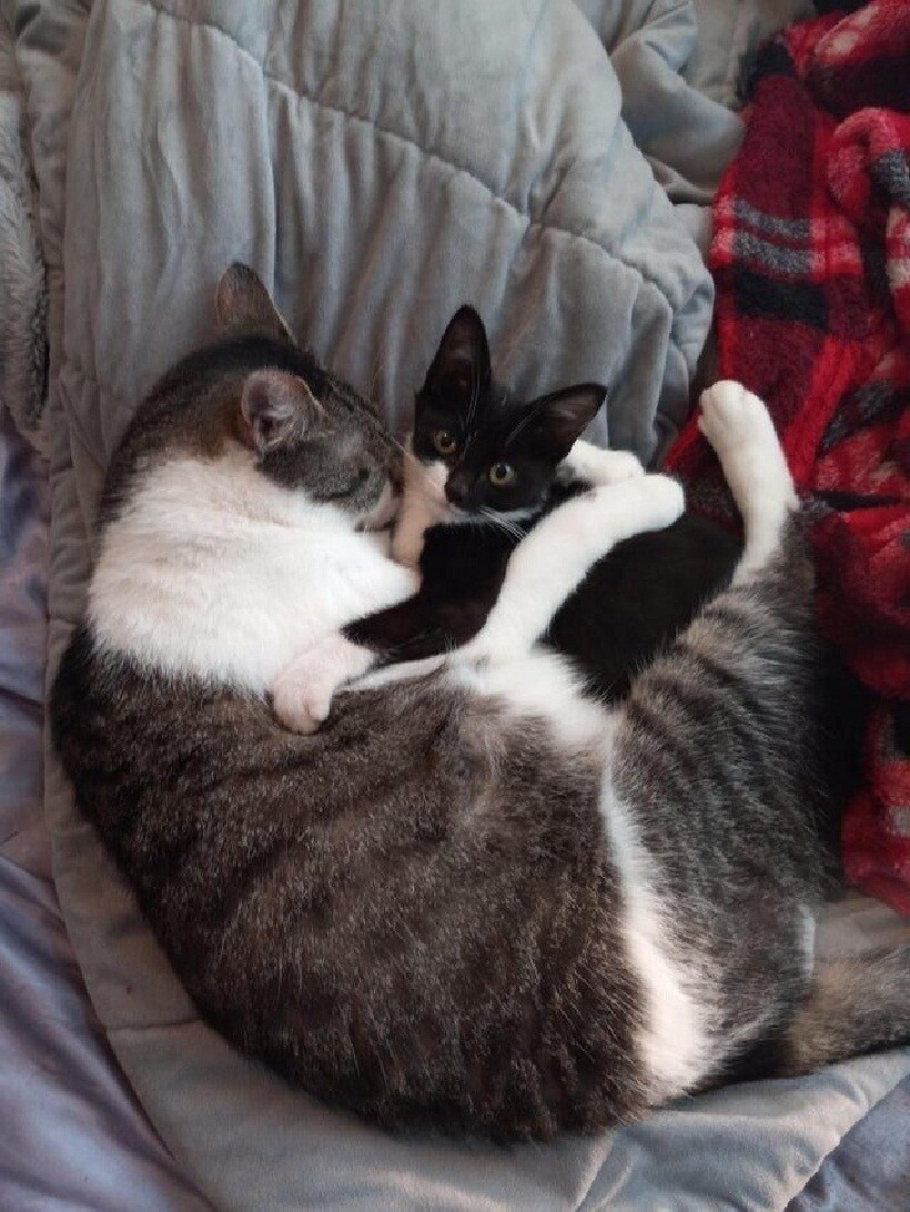 Кот привел бездомного котенка с улицы — вот так этот черно-белый малыш обрел дом