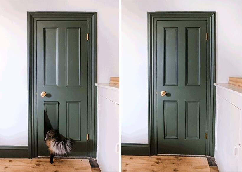 Дверь со скрытым кошачьим лазом: не каждый догадается о его существовании, глядя на эту дверь