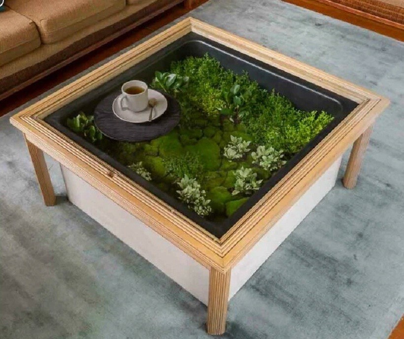 Журнальный столик с зелеными насаждениями суккулентов внутри