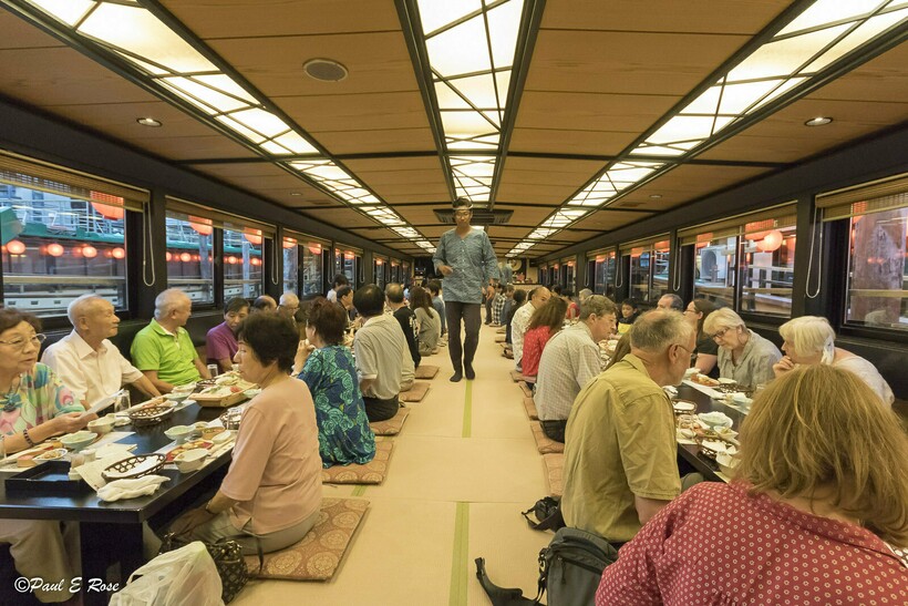 Как многим известно, традиционные обеды в Японии проходят за очень низким столом, который ненамного выше уровня пола. Вокруг него кладут татами — тростниковые коврики (либо же заменяют их чем-то помягче), на которых рассаживаются гости и хозяева дома. На большинстве традиционных мероприятий принято садиться за стол в позе сэйдза — подгибая колени под себя таким образом, чтобы стопы находились под ягодицами. Если же хозяева дома или торжества предлагают сесть поудобнее, то мужчинам можно устроиться, скрестив ноги, а женщинам — поджав, вытянуть их в сторону. Самое почетное место находится в середине стола, его, как правило, занимает хозяин дома. Напротив него садится почетный гость.