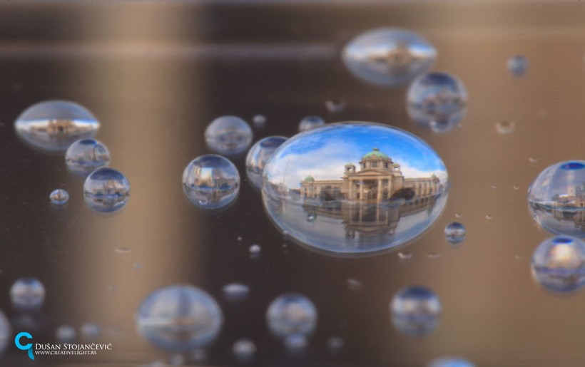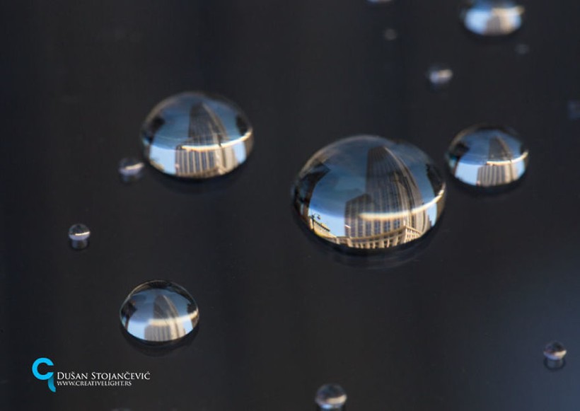 15 лет назад сербский фотограф Душан Стоянчевич начал делать потрясающие фотографии городов, отраженных в каплях воды. Некоторые снимки находятся на пленке, но большинство из них все же было сделано с помощью цифровой фотокамеры. Поскольку это макросъемка, а не фотошоп, фотографии имеют некоторые несовершенства резкости. Тем не менее они завораживающе прекрасны! Все эти недостатки лишь придают кадрам удивительный шарм и художественность.