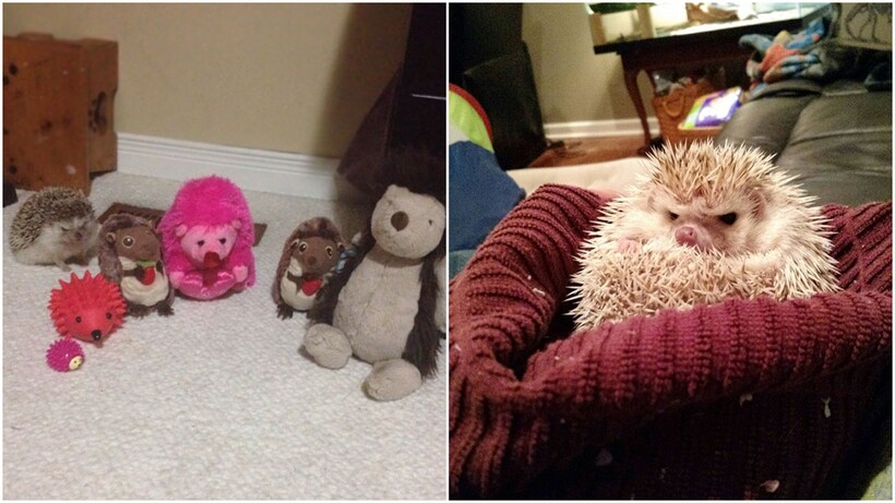 Колючий «злодей» затесался среди мягких игрушек: похоже, он что-то задумал