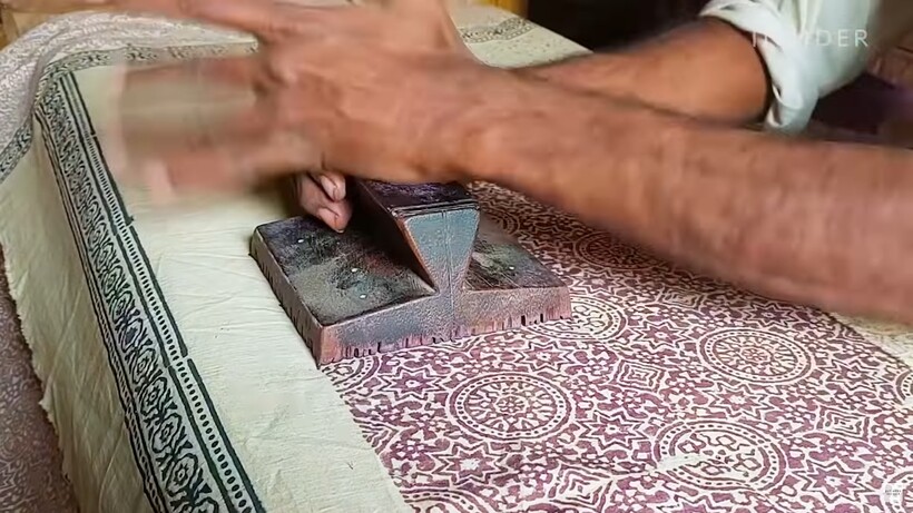 Все начинается с жесткого белого хлопка, который называется «кора». Чтобы сделать его мягче и податливее, рабочие несут полотна к ближайшему водоему, где мочат ткань и бьют ее о камни, чтобы выжать лишнюю воду. Это первая стирка. Можно было бы воспользоваться стиральными машинами, но истинные мастера, которые перенимали умение делать аджраки еще у своих дедов, делают все по старинке. Так они чтут традиции предков.