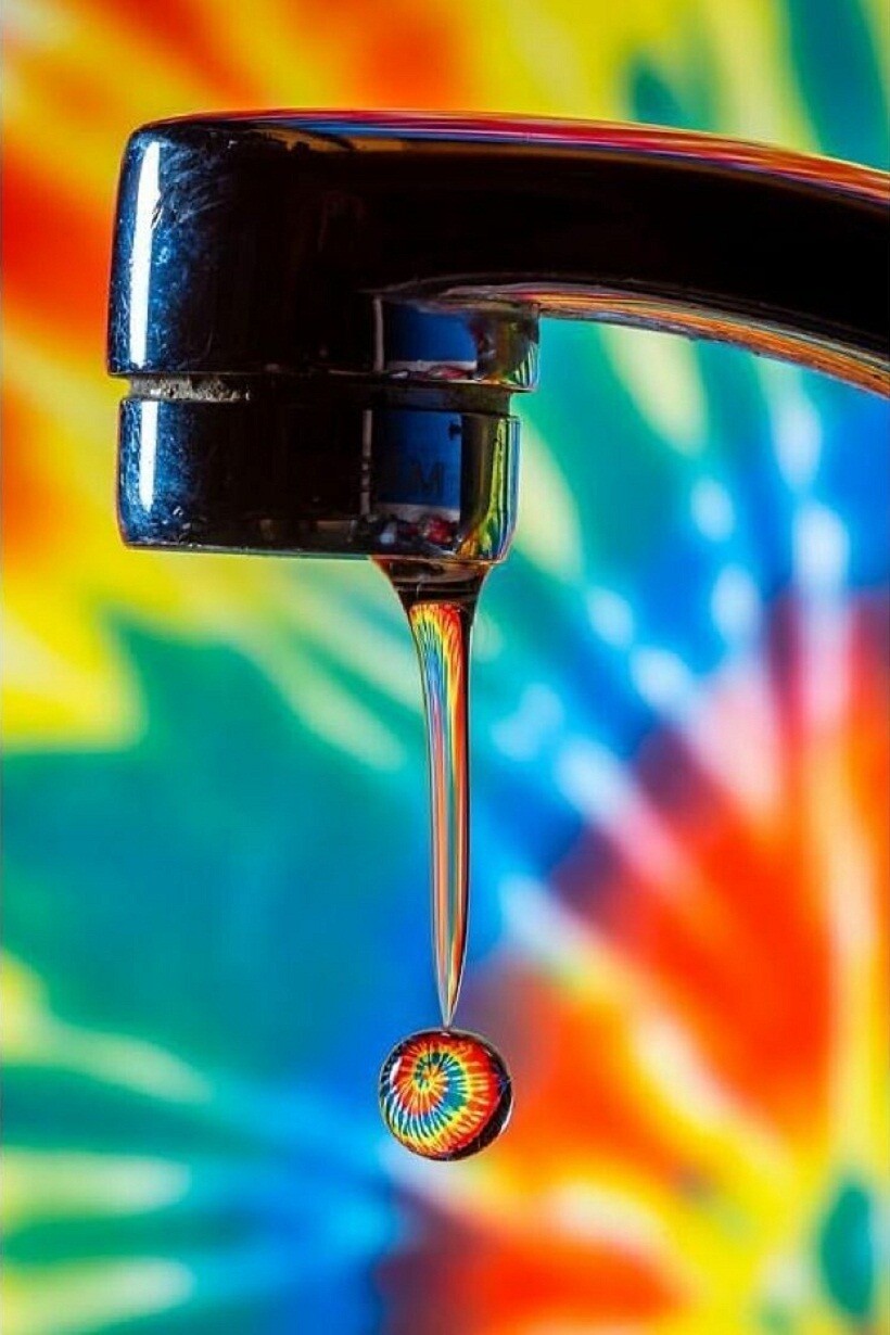 Всё, что нужно для создания такого фото, — это кран с вытекающей из него водой, свет и красочный фон сзади