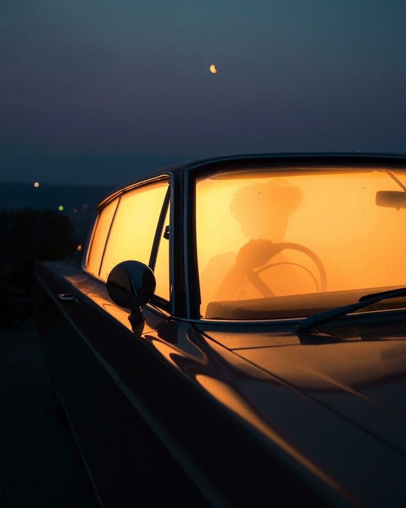 Автор этого фото сделал его сам при помощи искусственного тумана и светодиодной лампы с теплым освещением, поставленной сзади в салоне авто.