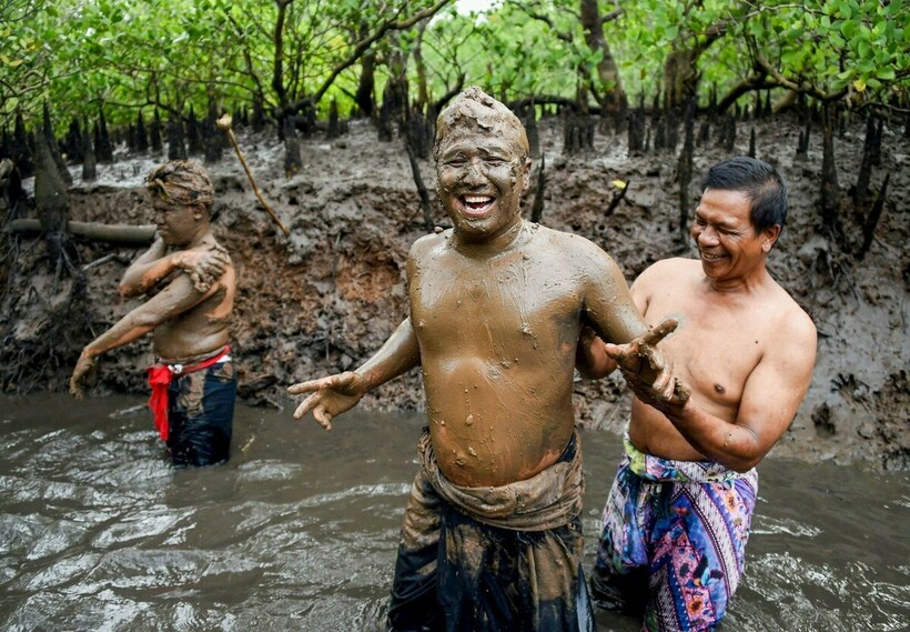 Ну а на следующий день жители Кедонганана отправляются на улицы с одной целью — измазаться грязью