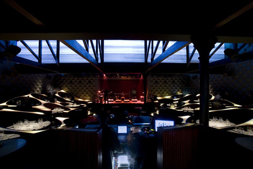 Странная конструкция этого бара предполагает, что где бы вы ни сидели, вы сможете услышать живую музыку и увидеть сцену, как если бы вы находились рядом с ней.