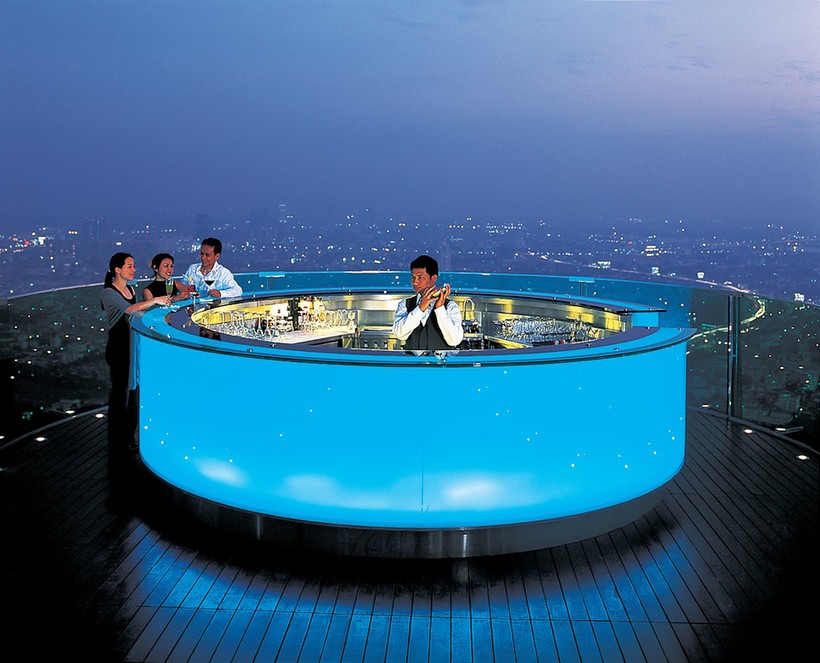 Sky Bar расположен на крыше Lebua State Tower, на уровне 63 этажа над оживленной улицей Бангкока. Здесь можно насладиться вкуснейшими коктейлями и восхитительным видом ночного города, сияющего морем огней.