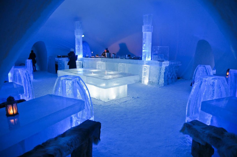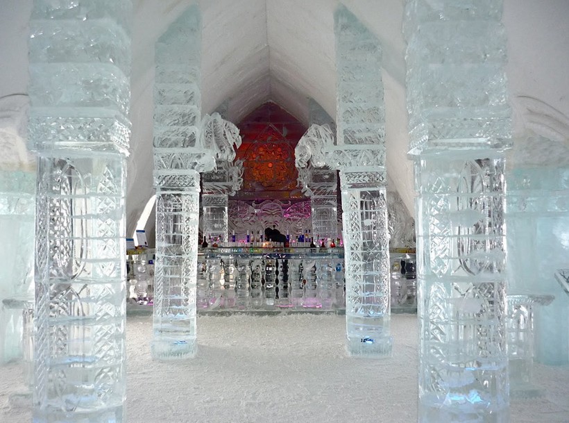 Этот бар из ледовых скульптур тает каждое лето и полностью перестраивается каждый год. С января по март посетителям предлагают охлажденные коктейли, но лучше бы выдавали пальто...