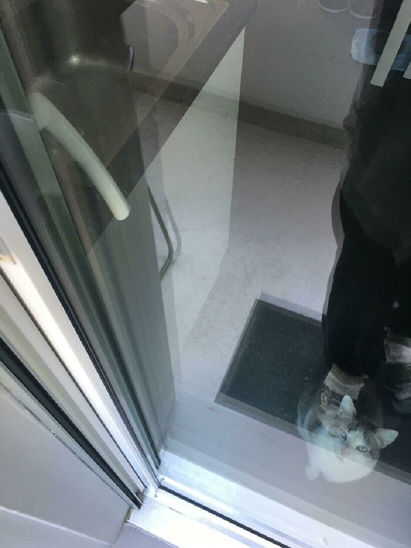 Кот закрыл дверь, когда его хозяин вышел на балкон