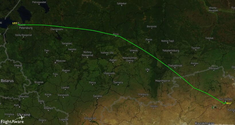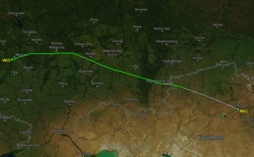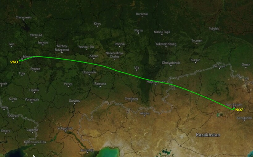 Маршрут полета из Москвы в Нур-Султан сейчас