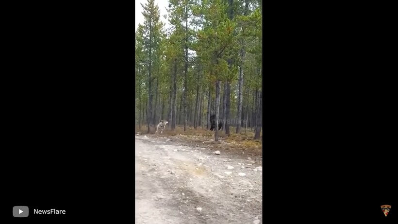 В Северном Саскачеване, Канада, развернулась перепалка между собакой и страшным волком. Правда, животное сначала приняли за медведя, так как зверь был поразительно огромных размеров. Но по мере приближения хищника, все встало на свои места. Сначала можно услышать, как собака просто громко лает на волка, но вскоре тот бросился в погоню. Какое-то время они держали дистанцию, но затем между животными произошло настоящее сражение. К концу видео можно услышать визг собаки, которую все-таки нагнал волк. К сожалению, дальнейшая судьба четверного осталась неизвестной.