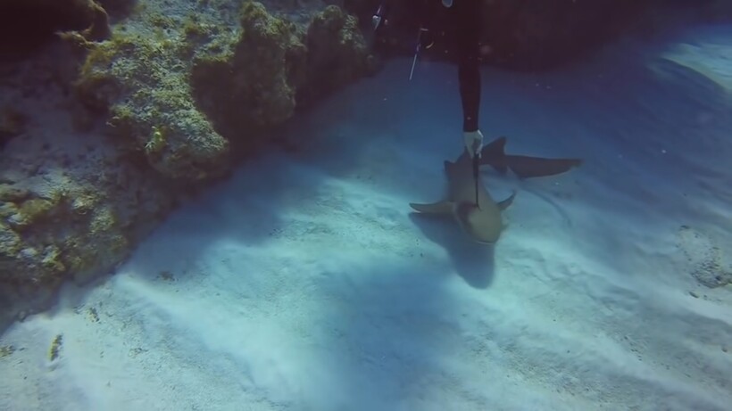 Чаще всего людям приходится спасать акул от действий других людей, что очень печально. У этой акулы-няньки, которая, кстати, абсолютно безвредна для человека, так как питается кораллами и моллюсками, в голове был 30-сантиметровый нож. Группа дайверов как раз занималась подводным плаванием в этом районе, когда акулы заметили их и начали кружить на одном месте, словно прося о помощи. Эти люди не могли остаться равнодушными. Инструктор-водолаз Бен Джонсон подплыл к раненому животному и осторожно вытащил нож. К сожалению, нет никакой информации о том, кто совершил этот жестокий поступок с абсолютно безвредной для человека акулой.