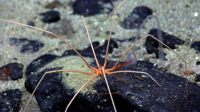Это удивительное существо очень похоже на обычного паука-сенокосца, которого можно встретить на дачных грядках, однако пауком оно не является. Вместо того чтобы отдыхать на чердаках и между листьями растений, как это делает его брат-близнец, это членистоногое обитает на дне океана.