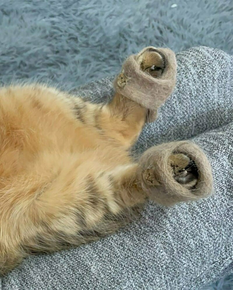 И лишь для того, чтобы свалять своей кошке крохотные тапочки для этих ножек