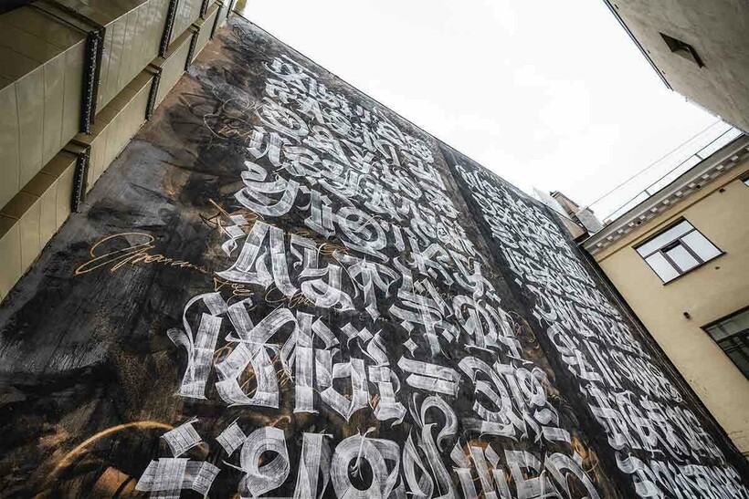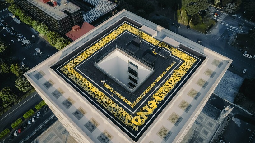 Эта работа украшает крышу дома Fendi в Италии. Художник, чтобы создать это «каллиграфити», готовился к нему около полутора месяцев — и результат превзошел все ожидания!