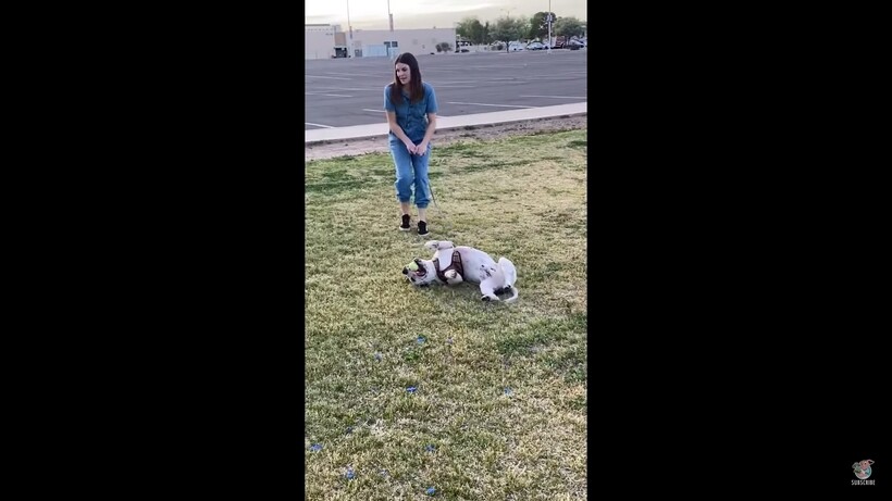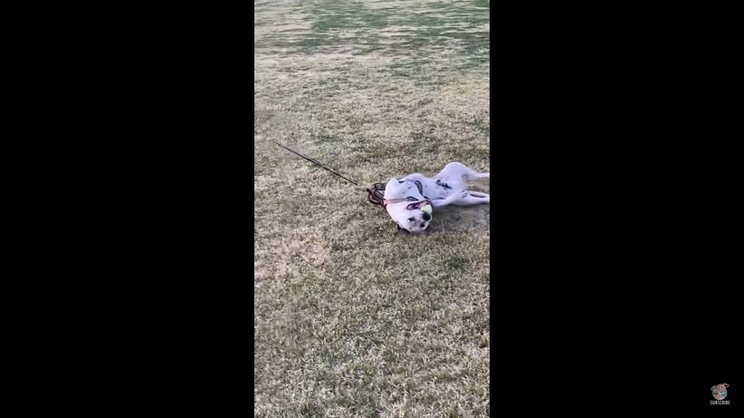 Этот пес из Аризоны явно не ожидает, что его прогулка должна предполагать активные действия, и он просто ложится на землю, отказываясь шевелиться даже тогда, когда хозяйка изо всех сил пытается сдвинуть зверя. По словам хозяйки, ее питомец обожает парки и очень любит играть с мячом. Как только на него надевают поводок, он понимает, что пора идти, и радостно направляется в парк. Однако стоит животному ступить на его территорию, оно тут же бросается на землю и не сдвигается с места до тех пор, пока его не поднимут.