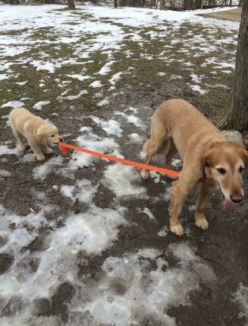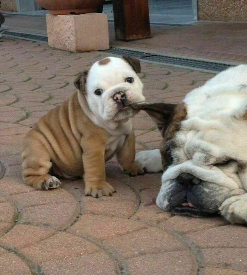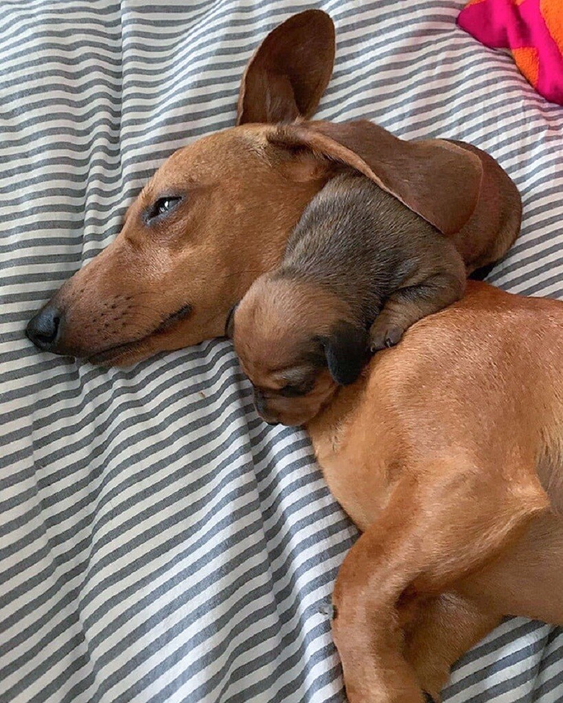 У нее уже не осталось сил реагировать на то, что щенок жует её ухо