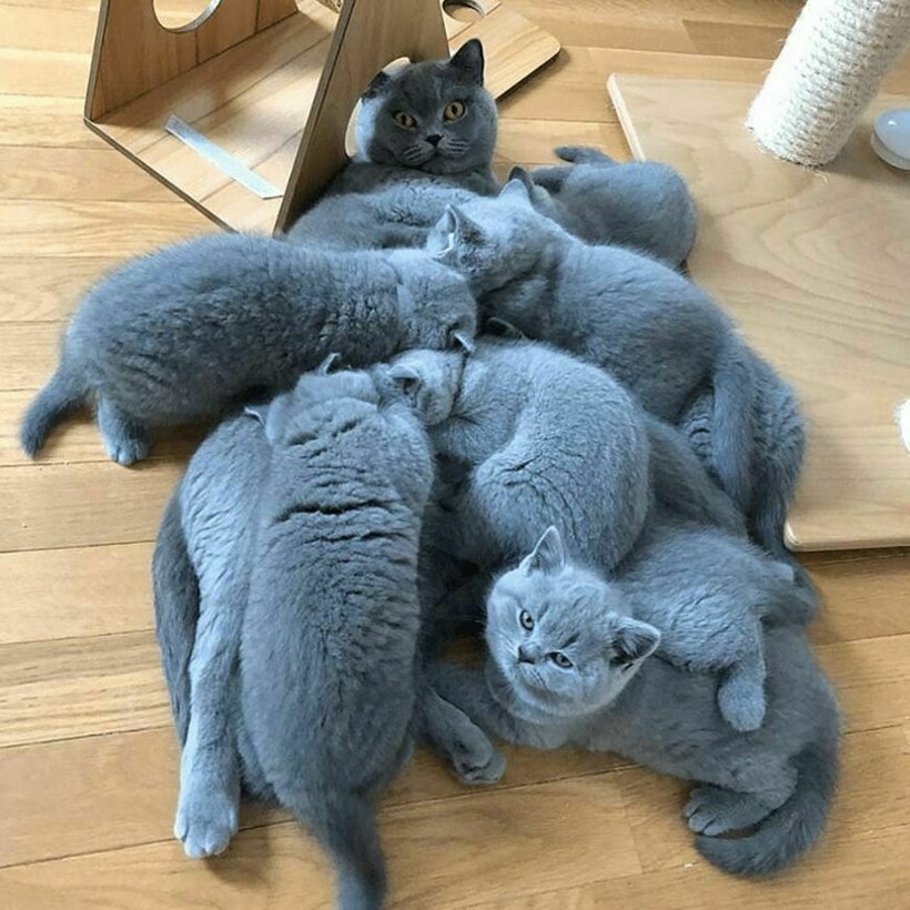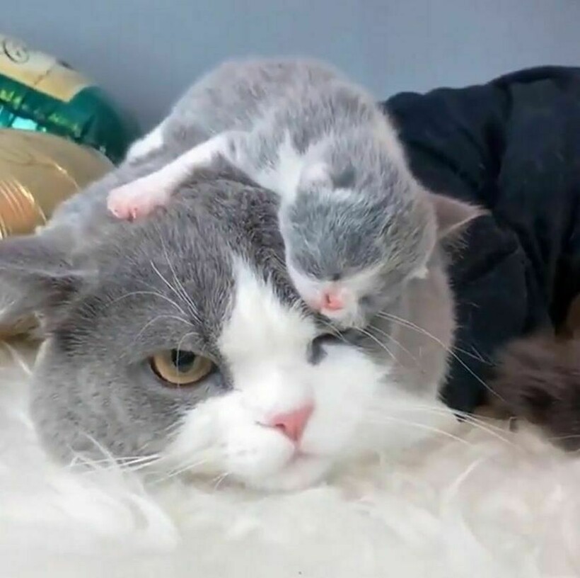 Похоже, мама-кошка мечтает о том, чтобы выспаться.