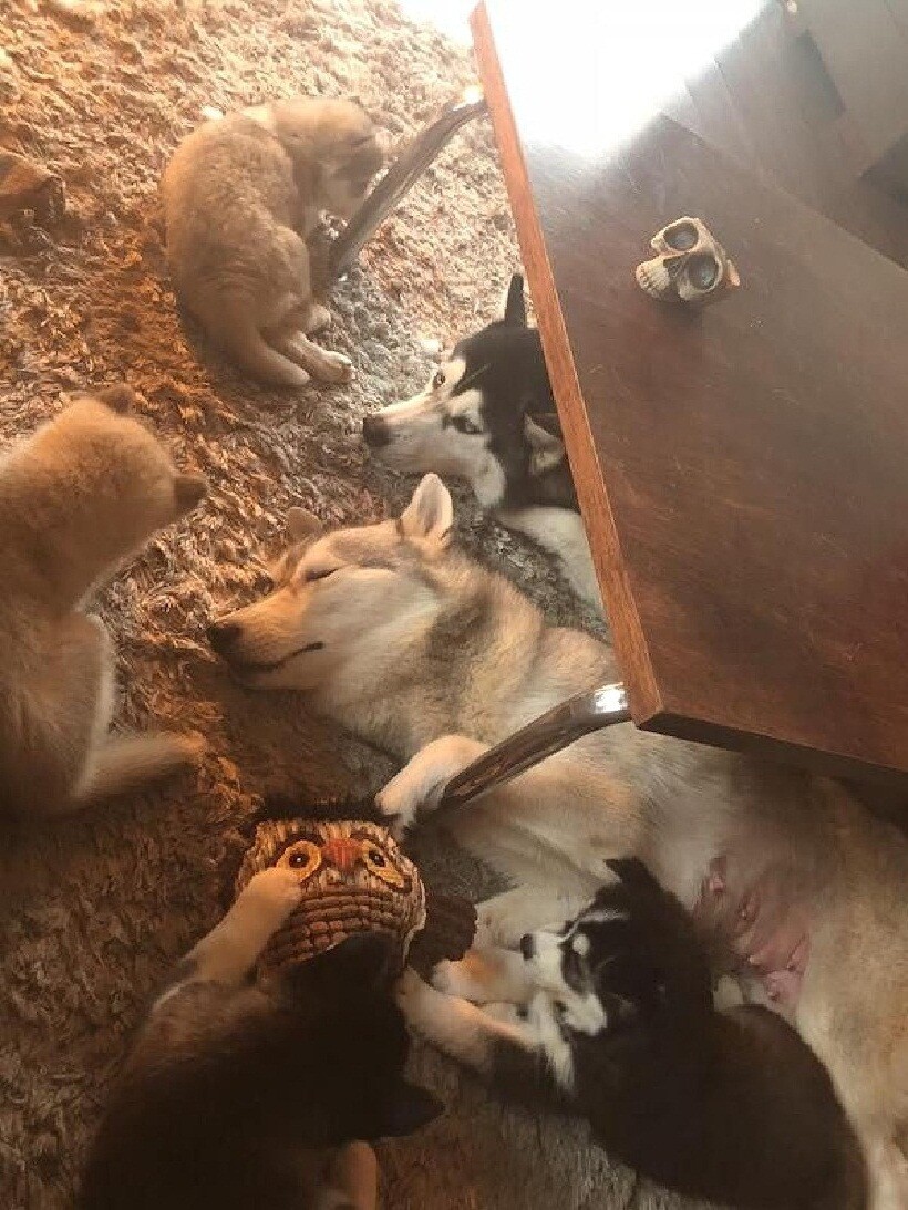 «Человек, я думала, что ты отдал щенков новым хозяевам! Их разве не забрали?!»