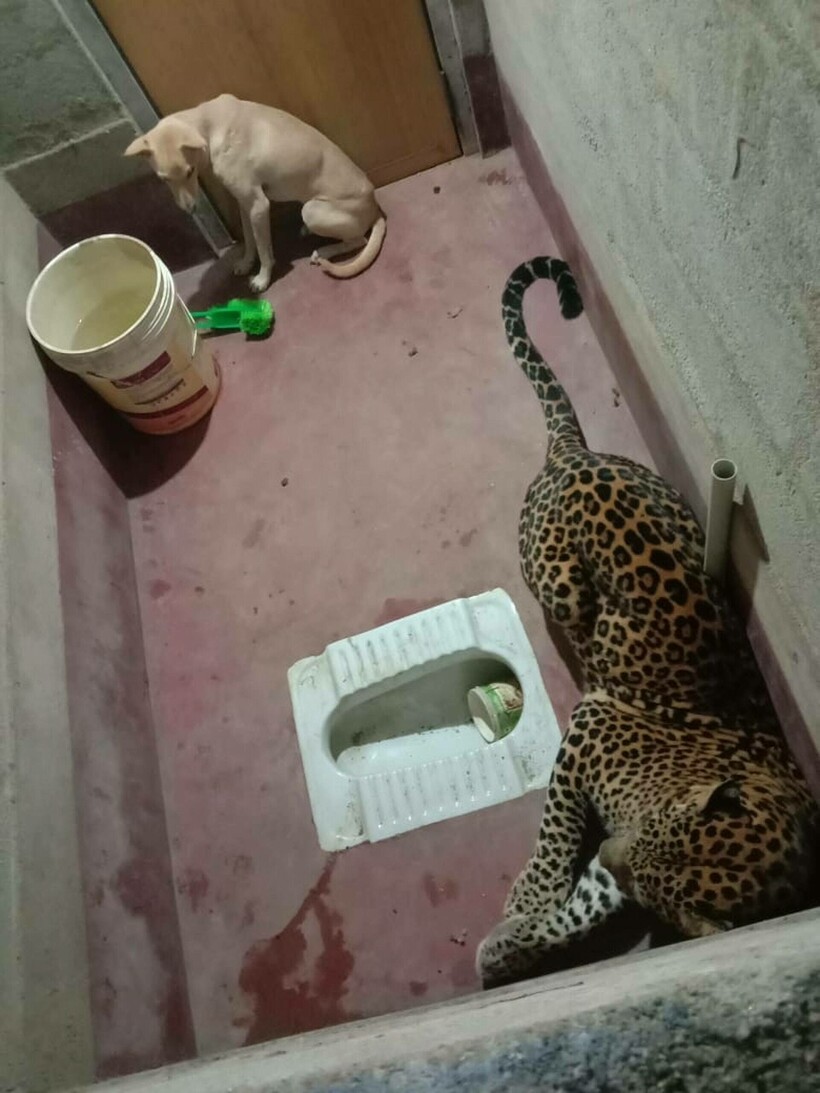 В аналогичной ситуации оказались животные в индийском штате Карнатака. Гулявшая по улице собака случайно попала в поле зрения леопарда. Хищник перешел в наступление и погнался за ней. Вот только животные оказались в ловушке, забежав в дом местного жителя. Хозяин жилья сильно удивился, когда увидел бежавшую по его коридору парочку. После того как животные заскочили в туалет, мужчина тут же захлопнул дверь. Вызвав спасателей, он стал ожидать их приезда.