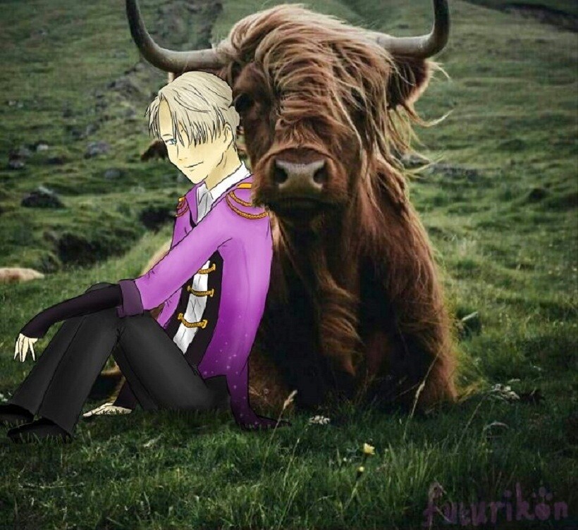 Разумеется, возле горной коровы с такой модной укладкой должен быть стильный персонаж