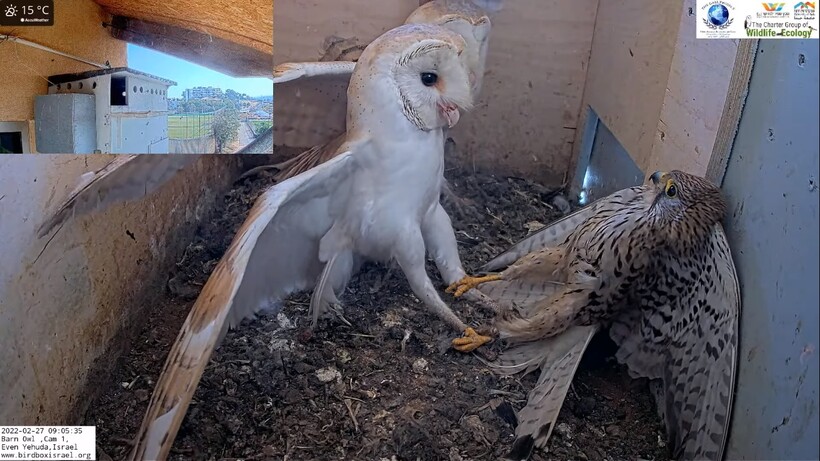 В одной из средних школ Израиля в рамках исследований были установлены специальные ящики для гнездования сипух. Птицы прекрасно прижились в них, а в благодарность пернатые помогают избавиться от различных вредителей на полях. Таким образом, в рамках необычного проекта сельскохозяйственные угодья обеспечили себя защитой от грызунов. Внутри одного из гнезд люди поставили камеру для наблюдения за жизнью животных. И однажды она зафиксировала необычайно волнительный случай. Пара сипух высиживала кладку, когда к ним в ящик вдруг залетела пустельга. Хищница решила полакомиться чужими яйцами, но получила нешуточный отпор. Пока белый самец агрессивно нападал на незваного гостя, самка более темного цвета не покидала свое потомство. Понявшая, наконец, свою ошибку пустельга спешно покинула чужое жилье и улетела, радуясь, что осталась цела.