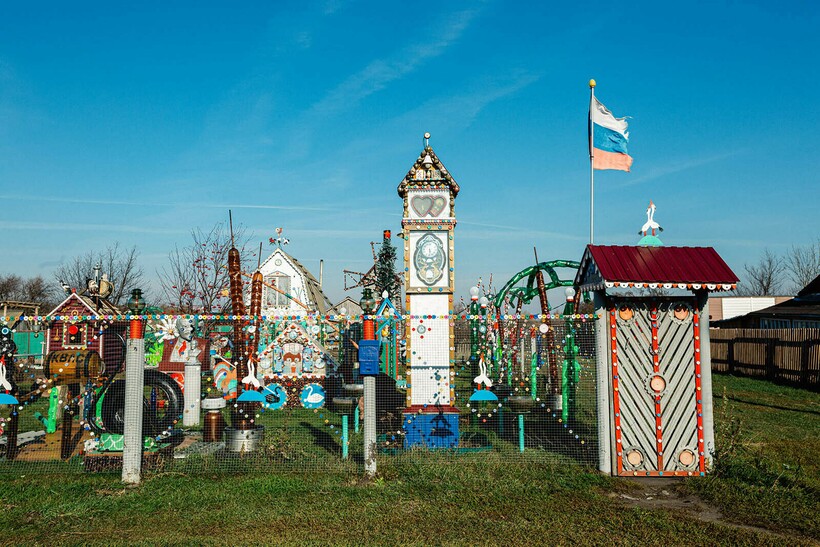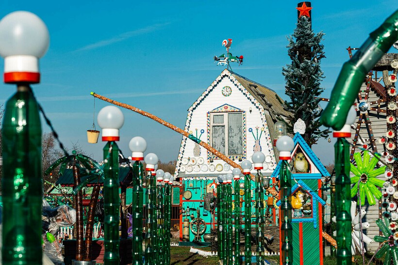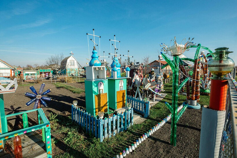 Территорию, на которой творит пенсионер, можно с уверенностью назвать музеем под открытым небом. Сюда даже водят на экскурсии детей, которые остаются в полном восторге от того, какая необычная достопримечательность появилась в их селе.