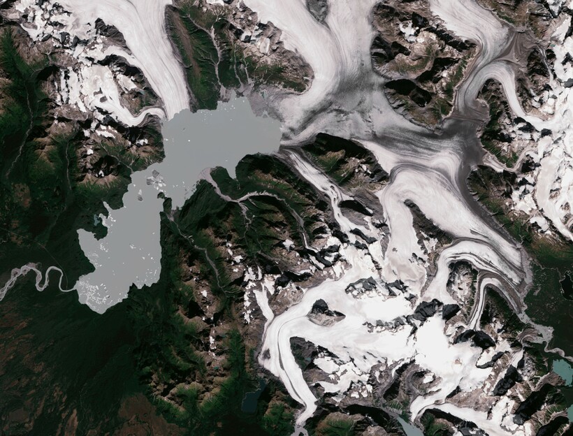 Снимок ледника на Аляске сделан не только ради красоты льда, но и ради отслеживания изменения его размера. На фоне глобального потепления он тает, и ученые переживают, что к 2070 году от аляскинского Якутата ничего не останется.