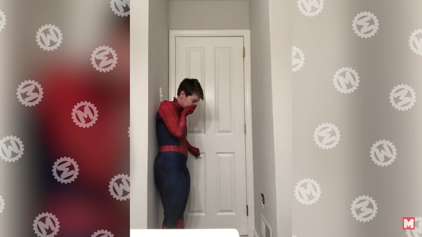 Человек-паук является для многих детей и подростков кумиром. Кто бы не хотел так виртуозно лазать по стенам, как он? Этот мальчик, по всей видимости, решил попробовать это сделать, но столкнулся с неприятностью — пробил в стене дыру. Что же, вряд ли родители оценят его разрушительное перевоплощение.