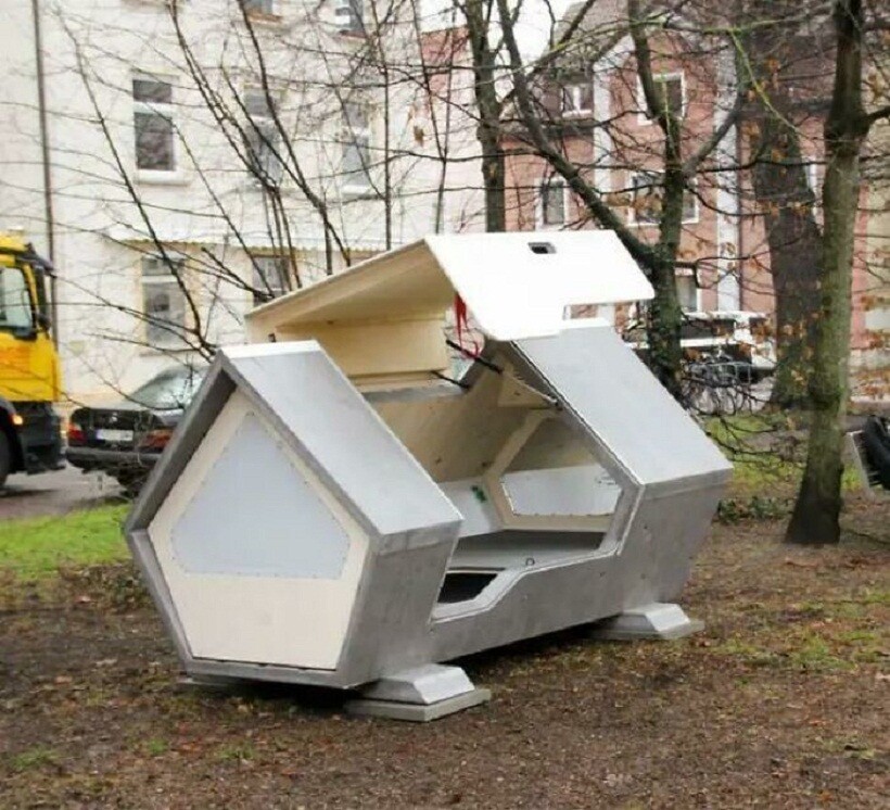 В некоторых местах можно увидеть капсулы для бездомных, оснащенные теплоизоляцией