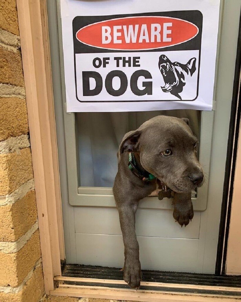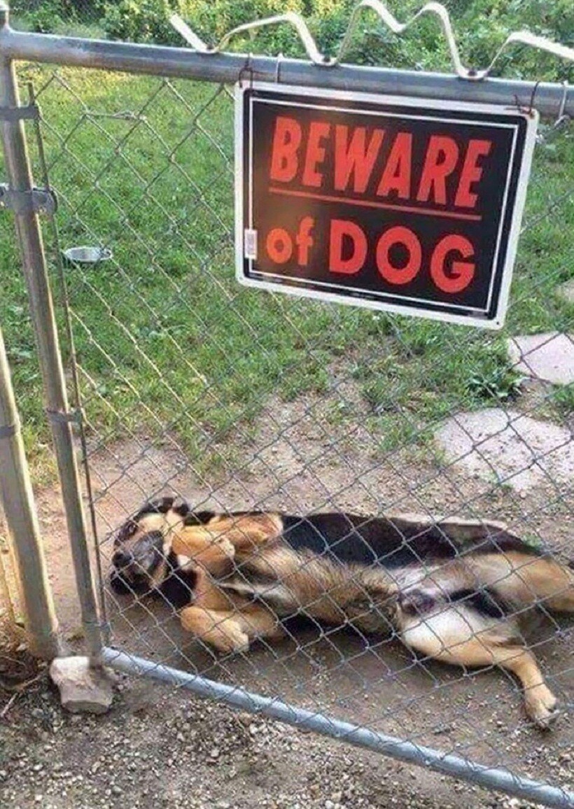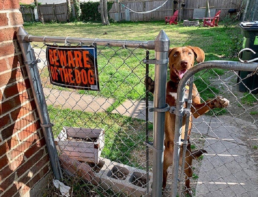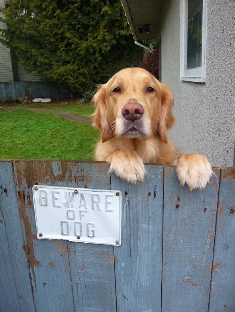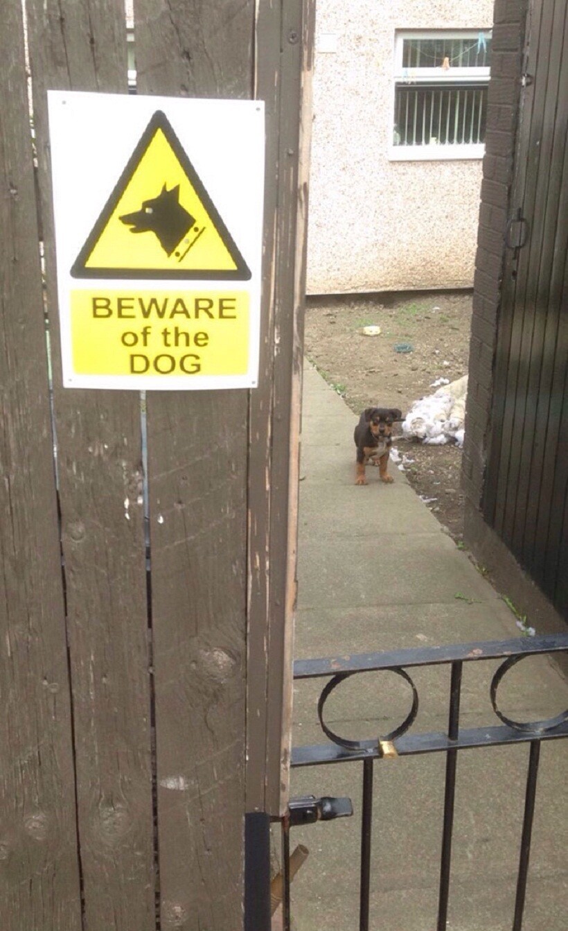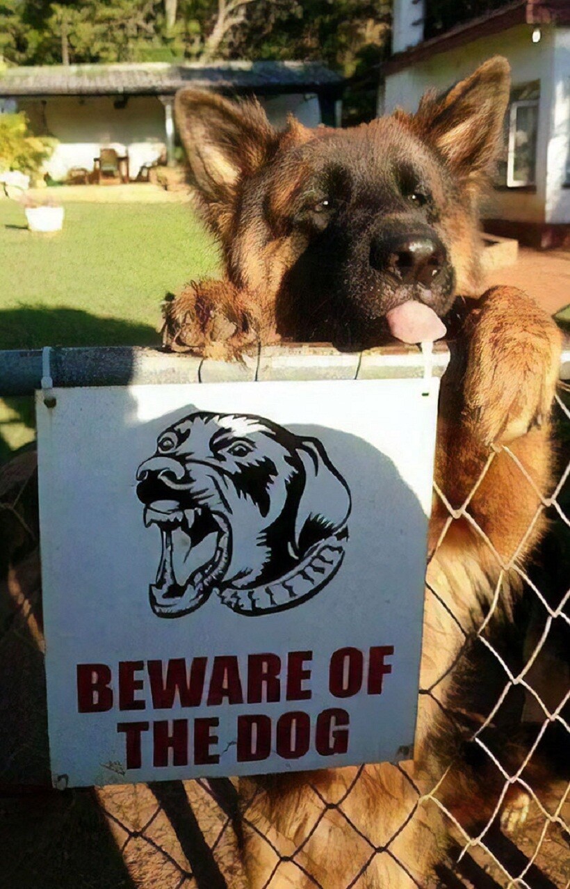 Эта табличка на воротах скорее для того, чтобы защитить собаку от людей