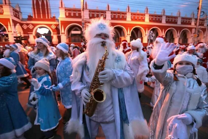 Зимой Калуга превращается в сказочный город — дома украшаются резными снежинками, а по улицам гуляют Деды Морозы и Снегурочки.