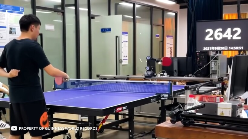 Для тех, кто хотя бы раз играл в настольный теннис, не секрет, что в этой игре многое зависит от тренировок. Если на какое-то время перестаешь заниматься теннисом и поддерживать себя в форме, навыки начинают пропадать. Юнь Фэнь — спортсмен из Китая, который установил рекорд, отбив теннисный мяч 6241 раз. Он играл с роботом, что усложняло задачу. За несколько часов игры Юнь Фэнь ни разу не уронил мяч.
